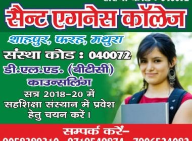 Pdu samachar ———————– मथुरा| फरह कस्बे से एक किलोमीटर दूर शाहपुर रोड पर प्रकृति के शांत और नीरव वातावरण में स्थित सेंट एगनेस द्विवर्षीय पाठयक्रम डी. एल. एड. का अल्प संख्यक संस्थान अपनी अनूठी विशेषताओं के लिए जाना जाता है| Share on: WhatsApp