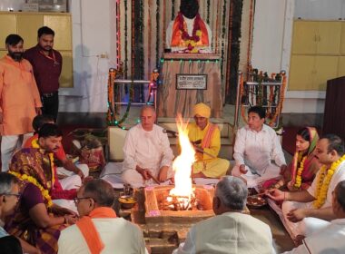 PDU समाचार फरह। एकात्म मानव दर्शन के प्रणेता, महामनीषी एवं राष्ट्रऋषि पं० दीनदयाल उपाध्याय जी के जन्मदिवस के अवसर पर दीनदयाल धाम स्थित जन्मस्थली राधाकृष्ण मंदिर परिसर में पवित्र वेद मंत्रोच्चारण के साथ हवन कर मनाया। हवन आचार्य विपिन विहारी जी आर्य के द्वारा कराया गया। इस अवसर पर निदेशक […]