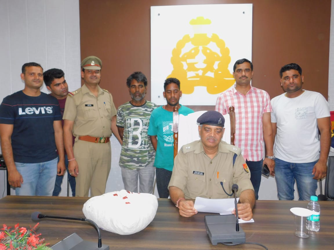 मथुरा | वरिष्ठ पुलिस अधीक्षक सत्यार्थ अनिरुद्ध पंकज के निर्देश पर छाता पुलिस व स्वाट टीम को शानदार सफलता मिली है | एसपी देहात आदित्य कुमार शुक्ला द्वारा प्रेस कॉन्फ्रेंस में जानकारी देते हुए कहा कि थाना छाता पुलिस द्वारा जसवंत पुत्र रतनलाल जाटव निवासी ग्राम बहरोला थाना सदर जिला पलवल हरियाणा, व किरण पाल पुत्र पूरन सिंह जाटव निवासी सोना रोड मीट मार्केट कृष्णा कॉलोनी हथीन चौक थाना सदर जिला पलवल हरियाणा को वाहन चेकिंग के दौरान 540 किलो गांजा कीमत लगभग 50 लाख रूपए सहित गिरफ्तारी की गई।