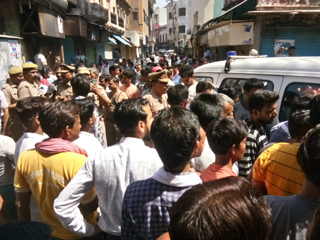 मथुरा | चौक बाजार स्थित भारत (33 वर्ष) लस्सीवाले को उधारी के पेसे मांगने पर कुछ लोगो ने मारपीट कर बुरी तरह घायल कर दिया था, रविवार को इलाज के दौरान उसकी मौत हो गई¦ गुस्साए दुकानदारों ने घटना के विरोध में चौक बाजार बंद कर विरोध प्रदर्शन किया और हत्यारों को गिरफ्तार करने की मांग की | लगभग दो घंटे से ज्यादा बाजार बंद रहा | मौके पर पुलिस के आला अधिकारी भी पहुंच गए | उन्होने दोषी पुलिसवालों के खिलाफ कार्रवाई करने और हत्यारों को जल्द पकड़ने का लोगों को भरोसा दिलाया |