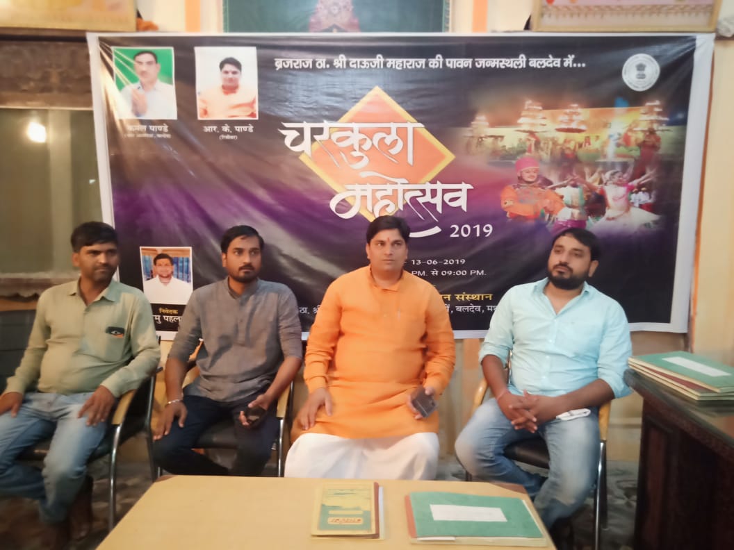 मंदिर को रंग बिरंगे गुब्बारों एवं महकते फूलों के साथ झिलमिल रोशनी से मंदिर को सजाया जाएगा। शाम पांच बजे से बलदेव नगर में भव्य शोभायात्रा आकर्षण झाकियां निकाली जाएगी। जिसका नगर में जगह-जगह स्वागत किया शाम को जाएगा। शाम को भारतीय स्वावलम्बवन संस्थान द्वारा यश भारती पुरुस्कार से सम्मानित गीताजंलि शर्मा व उनकी टीम के द्वारा चुरकला महोत्सव के अवसर पर चुरकला नृत्य,भजन गायन,रासलीला व बम रसिया का विशेष कार्यक्रम वालाद्वारी चौक में आयोजित किया जायेगा। कार्यक्रम के आयोजक मंदिर रिसीवर राम पांडे एवं माधव शर्मा ने सभी धर्मप्रेमी जनता से अधिक से अधिक संख्या में पधारने का अनुरोध किया है।
