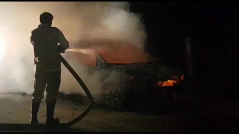 गाजियाबाद- के थाना कविनगर इलाके में हापुड़ रोड पर चलती हुई कार आग का गोला बन गई। गनीमत रही कि कार में सवार पांचों लोग समय रहते गाड़ी से बाहर निकल आए ।वरना बड़ा हादसा हो सकता था। आनन-फानन में इसकी सूचना स्थानीय पुलिस और दमकल विभाग को दी गई ।लेकिन जब तक दमकल विभाग की गाड़ी मौके पर पहुंची तब तक गाड़ी पूरी तरह जलकर राख हो चुकी थी। बताया जा रहा है कि शुरुआती दौर में आसपास के लोगों की मदद से कार में सवार लोगों ने आग को बुझाने का काफी प्रयास किया ।लेकिन देखते ही देखते आग ने पूरी कार को अपनी चपेट में ले लिया ।और कार धू-धू कर जलने लगी। हापुड़ रोड पर चलती हुई हुंडई कार में अचानक आग लग गई। बताया जा रहा है की कार में एक ही परिवार के 5 लोग सवार थे। जैसेे ही कार में आग लगनी शुरु हुई। चालक को इसकी जानकारी हो गई और उसने कार को सड़क किनारे किया और कार में बैठे सभी लोगों को बाहर निकाला।देखते ही देखते आग ने पूरी कार को अपनी चपेट में ले लिया । कार तेज लपट के साथ जलने लगी | स्थानीय लोगों ने पुलिस और दमकल विभाग को सूचित किया | लेकिन जब तक दमकल विभाग की टीम मौके पर पहुंची तब तक कार राख के ढेर में तब्दील हो चुकी थी । कार में आग कारण एसी चलने के बाद शॉर्ट सर्किट होना बताया गया है।