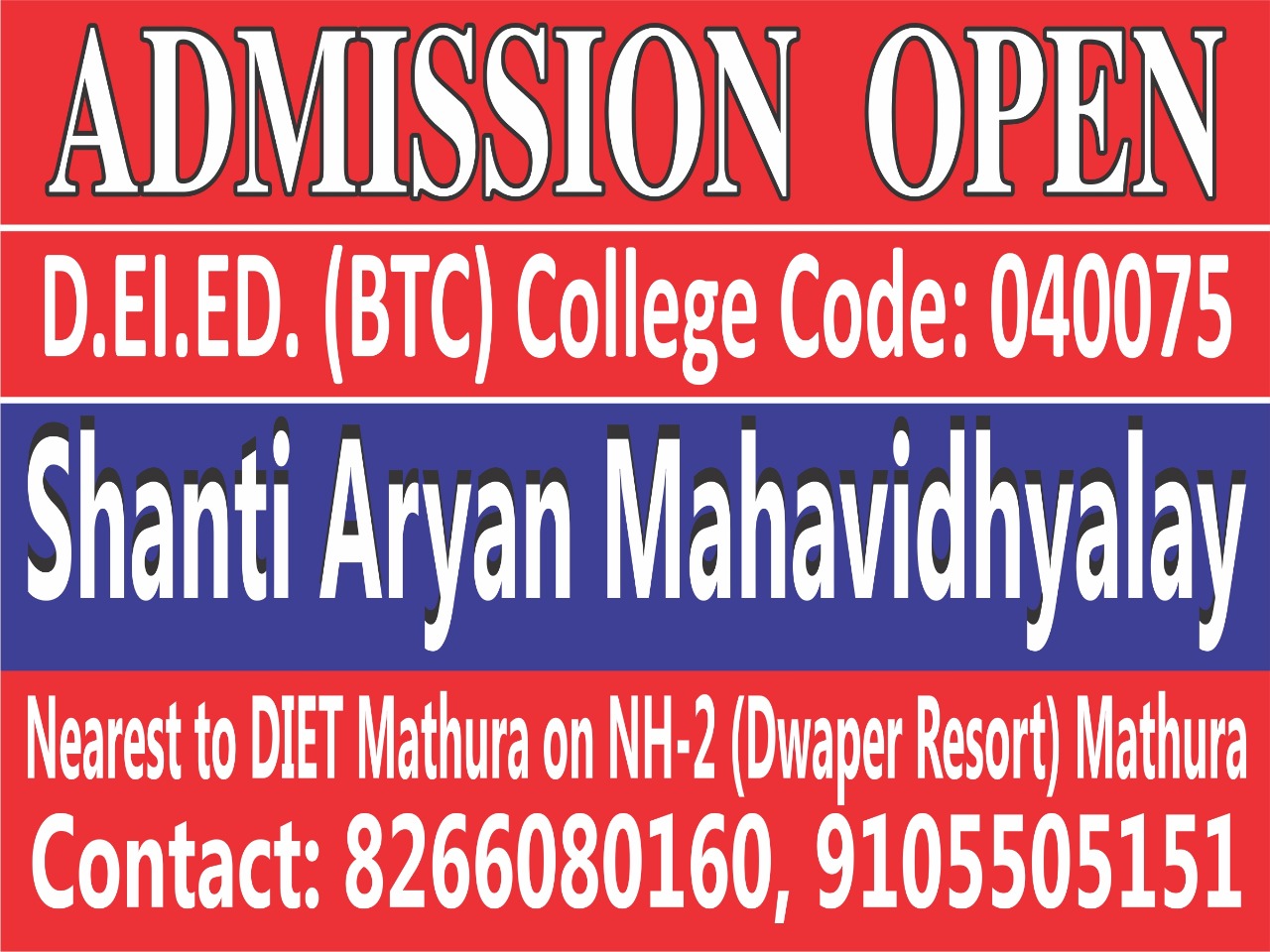गुणवत्ता और कुशलता पूर्ण प्रशिक्षण के लिए डाइट मथुरा से 10 मिनट की दूरी पर एनएच – 2 कुरकन्दा स्थित शांति आर्यन का विकल्प चुनकर कुशल टीचर बनने की दिशा में सार्थक प्रयास किया जा सकता है |