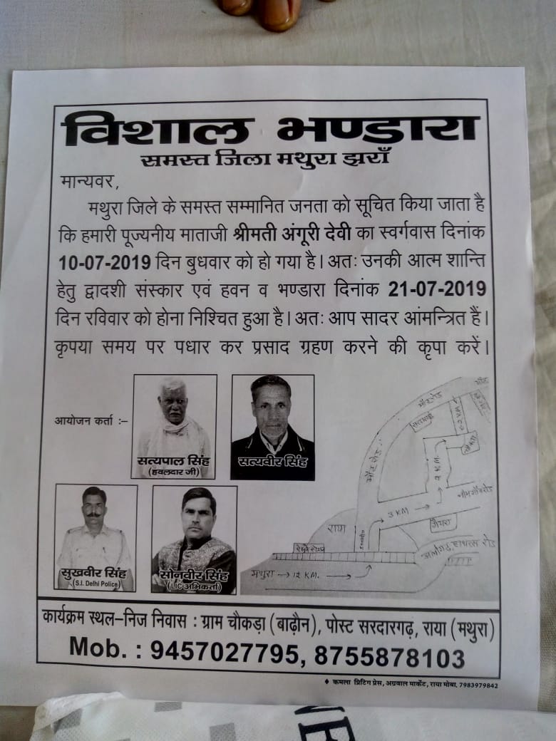 मांट।मृत्यु भोज को लेकर आज भी देहात में सोच नहीं बदली है,लोग अपने बुजुर्गों की याद में लाखों रुपया खर्च करके तेरहवीं कार्यक्रम आयोजित करते हैं।