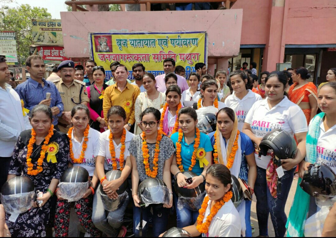 मथुरा | यातायात नियमों के प्रति लोगों में जागरूकता लाने के लिए बृज यातायात व पर्यावरण जानजागरूकता समिति व महिला संगठन नारीशक्ति की उड़ान के संयुक्त तत्वावधान में मथुरा में यातायात जागरूकता निकाली गई, जिसको एसपी ट्रेफिक ने हरी झंडी दिखाकर रवाना किया | रैली विकास बाजार से शुरू हुई l कार्यक्रम के मुख्य अतिथि एसपी ट्रेफिक डॉ बृजेश कुमार सिंह विशिष्ट अतिथि अंतरराष्ट्रीय भागवताचार्य व्रज यातायात एवं पर्यावरण जनजागरूकता समिति के संरक्षक डॉ मनोज मोहन शास्त्री, श्री कृष्ण वाहिनी के प्रदेश अध्यक्ष विजय यादव रहे |