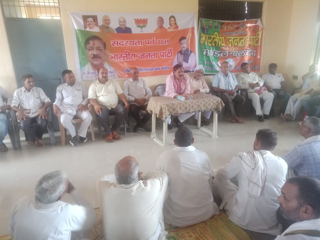 बलदेव- भारतीय जनता पार्टी बलदेव विधानसभा का सदस्य अभियान महापर्व आज विकास खंड बलदेव के गांव नगला टीका से शुभारंभ किया गया। कार्यक्रम का शुभारंभ क्षेत्रीय विधायक पूरन प्रकाश एडवोकेट ने भारत माता के चित्र माल्यार्पण पर माल्यार्पण कर दीप प्रज्वलन के साथ शुभारंभ किया । इस दौरान करीब ढाई सौ नए लोगों ने भाजपा की सदस्यता ग्रहण की। इस दौरान कार्यकर्ताओं को संबोधित करते हुए विधायक पूरन प्रकाश ने कहा की इस बार बलदेव विधानसभा में पिछले वर्ष की अपेक्षा हजारों नए सदस्य नए बनाए जाएंगे ।जो भाजपा की रीती नीतियों पर चल कर इस देश को मजबूत करेंगे । उन्होंने कहा भाजपा की केंद्र व प्रदेश की सरकार का लक्ष्य प्रत्येक गांव को संपर्क मार्ग से जोड़ने की प्राथमिकता हैं । विधायक निधि व अन्य निधियों के साथ-साथ इस विधानसभा में 80 करोड़ की लागत से सड़कों को मंजूरी दिलाई है। जो सड़कें खस्ताहाल हैं उनका कार्य बरसात के बाद प्रारंभ हो जाएगा । कार्यकर्ताओं की समस्याओं को प्राथमिकता के साथ हल कराया जाएगा । इस दौरान वरिष्ठ नेता अनिल रावत, शोभाराम रावत ,रनवीर सिंह प्रधान ,नीरज कुमार, अजीत छोकर ,महेंद्र सिकरवार ,लोकेंद्र सिंह , मनीष उपाध्याय ,लेखराज सिंह आदि अनेक भाजपा के सदस्य पदाधिकारी मौजूद थे। कार्यक्रम समाप्ति के बाद विधायक पूरन प्रकाश ने प्राथमिक विद्यालय टीका का भी निरीक्षण किया । जहां पर साफ-सफाई एवं बच्चों की बैठने के लिए फर्नीचर ना होने पर प्रधान की क्लास लगा दी । उन्होंने कहा विद्यालय में बच्चों के लिए फर्नीचर शीध्र बनवाया जाये। व सफाई बहु नियमित कराई जाए।