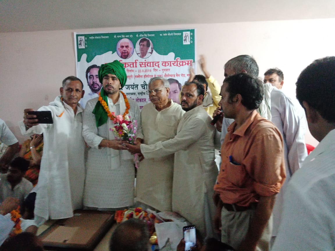 मथुरा | राष्ट्रीय लोकदल का जनपद स्तरीय कार्यकर्ता संवाद कार्यक्रम गुरुवार को संपन्न हुआ, जिसमे मुख्य अतिथि किसान मजदूर नेता जयंत चौधरी रहे | कार्यक्रम में संगठन की मजबूती और कार्यकर्ताओं की मजबूती पर संवाद हुए | कार्यक्रम में पूर्व सांसद जयंत चौधरी ने कहा कि किसानो और संगठन के निर्भीक सिपाहियों को किसान विरोधी सरकारों का डट कर मुकाबला करना है| कार्यकर्ता संवाद कार्यक्रम जिलाध्यक्ष रामरसपाल पौनियाँ के निवास पर सम्पन्न हुआ।