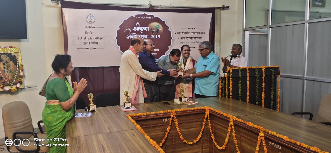 मथुरा | वृन्दावन शोध संस्थान के तत्वावधान में आयोजित सात दिवसीय व्याख्यान माला के अंतर्गत आज श्रीकृष्ण जन्म – बाल साहित्य के संदर्भ में*आयोजित व्याख्यान कार्यक्रम में केंद्रीय हिंदी सलाहकार समिति इस्पात मंत्रालय केंद्र सरकार के सदस्य डॉ विकास दबे ( इंदौर ) , *जिला विद्यालय निरीक्षक मथुरा कृष्णपाल सिंह , वृन्दावन शोध संस्थान के निदेशक* डॉ सतीश चंद्र दीक्षित , *राष्ट्रीय शैक्षिक महासंघ के पूर्व राष्ट्रीय महामंत्री* डॉ विनोद बनर्जी , *साहित्य पद्मश्री* डॉ सरोज गुप्ता सरस्वती ने *भारत स्काउट एवं गाइड मथुरा के अध्यक्ष , रेडक्रॉस सोसायटी के सचिव , स्वच्छता अभियान के कोर्डिनेटर , उत्तर प्रदेश प्रधानाचार्य परिषद के प्रदेश मंत्री और त्याग मूर्ति राजा महेंद्र प्रताप द्वारा स्थापित प्रेम महाविद्यालय इंटर कॉलेज के प्रधानाचार्य* डॉ देव प्रकाश को *सम्मानित किया*।