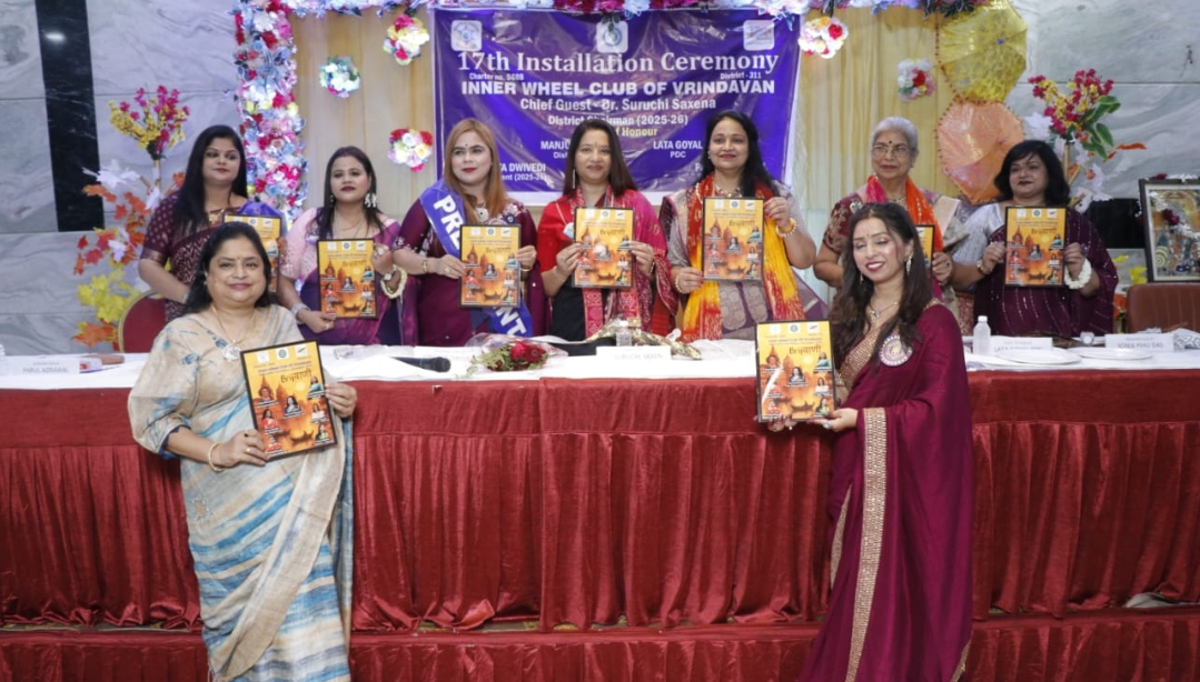 इनर व्हील क्लब वृन्दावन द्वारा शपथ ग्रहण समारोह कार्यक्रम मनाया गया। सर्वप्रथम मुख्य अतिथि डिस्ट्रिक चेयरमैन सुरुचि सक्सेना, डिस्ट्रिक आईएसओ मंजू पारीक, लता गोयल, अध्यक्ष विनीता द्विवेदी, सचिव पारुल अग्रवाल, चाटर्ड प्रेसिडेंट मधु खंडेलवाल ने दीप प्रज्वलन किया। शुरुआत गणेश वंदना से की गई। सोनिया पीहू दास से कॉलर एक्सचेंज किया, उसके बाद डिस्ट्रिक चेयरमैन सुरुचि सक्सेना द्वारा विनीता द्विवेदी को अध्यक्ष का पदभार ग्रहण कराया गया। पारुल अग्रवाल को अंशु वार्ष्णेय एवं मुख्य अतिथि द्वारा पदभार ग्रहण कराया गया। डिस्ट्रिक्ट चेयरमैन सुरुचि सक्सेना ने बताया कि पीड़ित की सेवा करना और स्टेप ऑफ लीड थीम के तहत काम करना है। जिससे समाज में सकारात्मक परिवर्तन लाया जा सके। डिस्ट्रिक्ट आईएसओ मंजू पारीक ने बताया कि पीड़ित मानवता की सेवा करना क्लब का उद्देश्य है और हम सभी को इस दिशा में काम करना चाहिए। पीडीसी लता गोयल ने बताया कि क्लब सामाजिक कार्य कर रहा है और ऊंचाइयों को छुएगा। विनीता द्विवेदी ने बताया कि क्लब द्वारा में अनेकों पदों पर रही और दूसरी बार मुझे अध्यक्ष बनाकर विश्वास जताया, मैं क्लब ऊंचाइयों तक ले जाने का काम करूंगी। ब्रांडिंग प्रोजेक्ट किया गया, जिसमें ई-रिक्शा वालों को स्टीफनी कवर दिए गए। साथ ही विनीता द्विवेदी, एडिटर हिना गौतम द्वारा एक ब्रांडिग न्यूज लेटर लॉन्च किया गया। यह कार्यक्रम सफलतापूर्वक आयोजित किया गया। इस मौके पर ट्रेजरार अंजलि गोयल, गुन्जन चौधरी, वर्षा शर्मा, राधा गोस्वामी, श्रुति हरि, स्वीटी शर्मा, डॉ. ललिता, वीना यादव, ममता शर्मा, साधना शर्मा, अंजलि गोस्वामी, सुरभि, अनुपमा चौधरी, अर्चना गोस्वामी, अर्चना यादव, सृष्टि शर्मा, दीप्ति, वंदना, स्वीटी आदि मौजूद रहे।