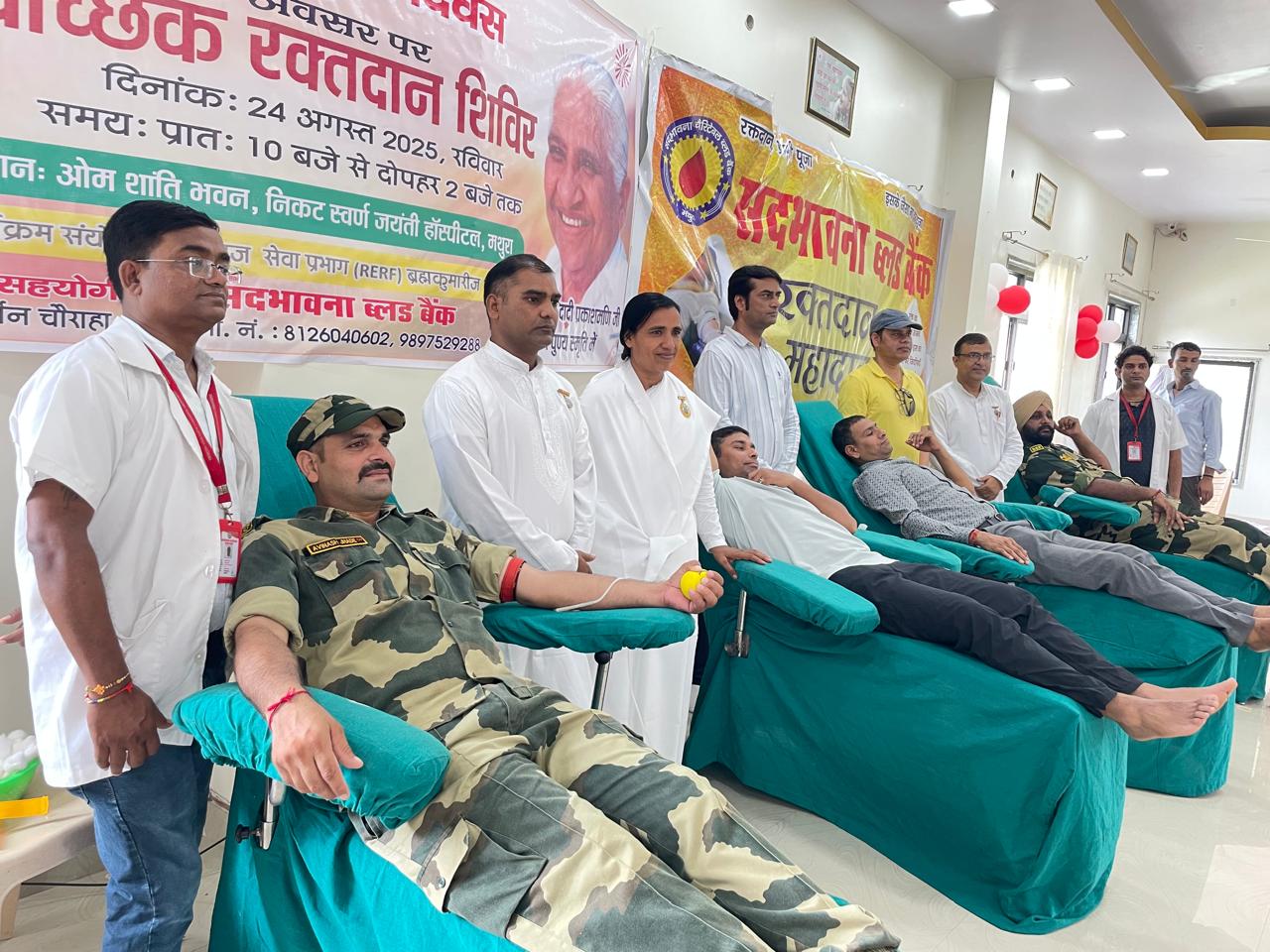 रिफाइनरी नगर सेवा केंद्र पर सदभावना चेरिटेबल ट्रस्ट के सहयोग से विशाल रक्तदान शिविर लगाया गया।इस राष्ट्रीय महाअभियान का लक्ष्य एक लाख यूनिट रक्त एकत्रित करना है।रिफाइनरी के चीफ जनरल मैंनेजर यच यस रुखियार,जी म श्री डी सी वर्मा,सी आई यस फ के कमानडेंट नीरज भारती, सेवा केंद्र प्रभारी बी के कृष्णा दीदी ने दादी की प्रतिमा पर दीप प्रज्जवलन और माल्यार्पण से किया।167 वीं बटालियन बीएसफ जेट फायर सेफ्टी इंस्टिट्यूट, मथुरा रिफाइनरी के कर्मचारी और ब्रह्माकुमारी संस्था के प्रतिनिधियों ने बढ़ चढ़ कर सहभागिता की।स्थानीय सेवाकेंद्र प्रभारी बी के कृष्णा दीदी और कमांडेट नीरज भारती जी ने स्वयं भी रक्तदान कर, सभी का उत्साहवर्धन किया। लगभग 100 रक्त दाताओं ने रक्त दान किया और मानवता के प्रति अपना समर्पण भाव व्यक्त किया।सेवा केंद्र प्रभारी बीके कृष्णा दीदी जी ने सभी को सर्टिफिकेट देकर सभी दानकर्ताओं का आभार प्रकट किया।इस दौरान बी के मनोज, बी के पूजा, बी के मनोहर,बी के नीलम,बी के प्रमोद वर्मा, बी के आलोक, दामोदर, छाया बहन, लालसिंह, कमलभाई, राजनाथ, नवीन,नीतू, शिखा,दामिनी, बॉबी, गौरव,धान्या आदि मौजूद रहे।मीडिया कर्मी देवेन्द्र रावत ने भी रक्तदान किया।