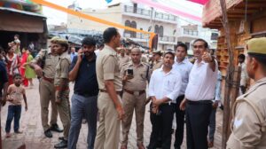 मथुरा। जिलाधिकारी चंद्र प्रकाश सिंह तथा वरिष्ठ पुलिस अधीक्षक श्लोक कुमार द्वारा राधाष्टमी पर्व/मेला के दृष्टिगत थाना बरसाना क्षेत्रान्तर्गत श्री राधारानी मन्दिर व आस-पास के क्षेत्र में पैदल भ्रमण कर निरीक्षण किया गया एवं साफ सफाई व्यवस्था को बेहतर रखने के निर्देश दिए।