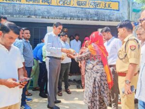 मथुरा। जिलाधिकारी चंद्र प्रकाश सिंह ने तहसील छाता के ग्राम बहटा में स्थापित बाढ़ शेल्टर होम/ बाढ़ शरणालय स्थल का निरीक्षण किया। जिलाधिकारी के निरीक्षण के दौरान राहत शिविर में बाढ़ प्रभावित लोग भोजन करते हुए पाए गए, जिसपर जिलाधिकारी ने उनसे भोजन की गुणवत्ता के बारे में पूछा। लोगों ने कहा कि भोजन अच्छा है तथा समय से नाश्ता, खाना आदि मिलता है। उप जिलाधिकारी छाता वैभव गुप्ता ने अवगत कराया कि उक्त बाढ़ राहत शिविर में 43 लोग रह रहे है। जिलाधिकारी ने सभी को धैर्य / संयम बनाए रखने हेतु प्रेरित किया तथा कहा कि दो – तीन दिनों में सभी चीजें सामान्य हो जाएंगी। दो – तीन दिनों में यमुना जी के जलस्तर में कमी आना चालू हो जाएगा। जिलाधिकारी ने बाढ़ राहत शिविर में उपस्थित बाढ़ प्रभावित परिवारों को राशन सामग्री किट का वितरण किया तथा सभी से उनका कुशलक्षेम जाना। उन्होंने सभी की समस्याओं को सुना तथा आश्वासन दिया कि सभी की समस्याओं का निराकरण किया जाएगा। उन्होंने कहा कि बाढ़ प्रभावित क्षतिग्रस्त मकानों एवं फसलों का सर्वे किया जाएगा तथा सभी को मुआवजा दिया जाएगा। उक्त कार्य हेतु प्रशासन पूर्ण रूप से कटिबद्ध है। सरकार द्वारा बाढ़ प्रभावित परिवारों की मदद हेतु सभी प्रयास किए जा रहे है, किसी को कोई भी परेशानी नहीं होने दी जाएंगी। जिलाधिकारी ने बहटा में मेडिकल टीम द्वारा दिए जा रहे उपचार का जायजा लिया। उन्होंने मेडिकल टीम को अपने कार्यों को जिम्मेदारी से निर्वहन करने के निर्देश दिए। जिलाधिकारी ने मेडिकल टीम द्वारा प्रयोग की जा रही दवाओं को भी चेक किया तथा एक्सपायरी देखी। ग्राम बहटा के निरीक्षण के उपरांत जिलाधिकारी चंद्र प्रकाश सिंह ने यमुना जी के बढ़ते जलस्तर के दृष्टिगत तहसील मांट की शहीद चन्द्रशेखर आजाद पुलिस चौकी यमुना पुल थाना नौहझील के निकट सड़क मार्ग पर आए यमुना जी के जल का अवलोकन किया। जिलाधिकारी ने क्षेत्राधिकारी छाता भूषण वर्मा को निर्देश दिए कि उक्त क्षेत्र के आस-पास सभी भट्टा संचालकों से वार्ता करे तथा सभी मज़दूरों को ससमय सुरक्षित स्थानों पर शिफ्ट करें। जिलाधिकारी ने निर्देश दिए कि बैरियर लगाकर उक्त सड़क मार्ग को बंद करे। सभी वाहनों का आवागमन पूर्णतः बंद करे। सड़क मार्ग पर पुलिस कर्मचारियों की 24 घंटे ड्यूटी लगाई जाए तथा निरंतर क्षेत्र में गश्त करते रहे।
