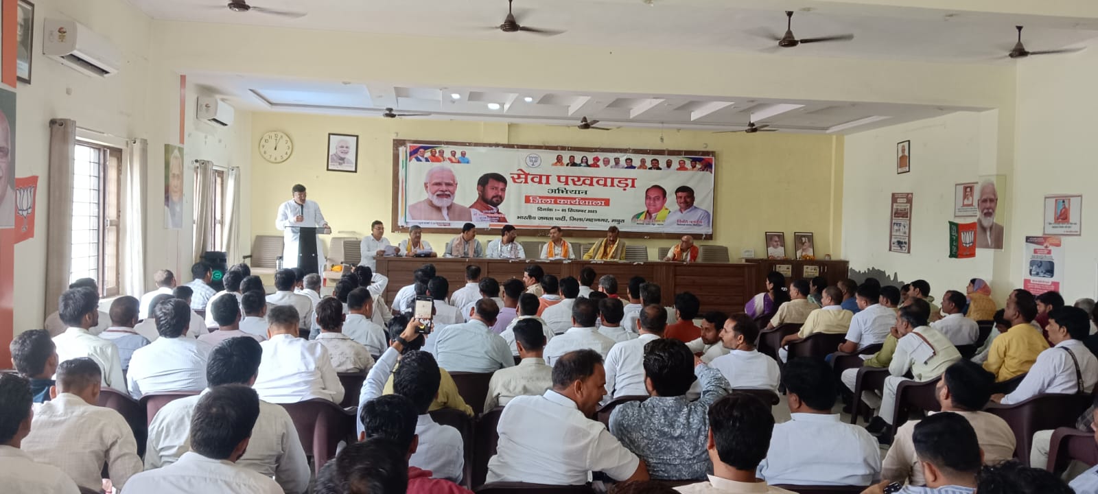 मथुरा। भारतीय जनता पार्टी 17 सितंबर से 2 अक्टूबर तक सेवा पखवाड़ा मनाने जा रही है। इस दौरान भाजपा कार्यकर्ता रक्तदान शिविर, मैराथन दौड़, स्वच्छता अभियान और प्रदर्शनियां आयोजित करेंगे। भारतीय जनता पार्टी 17 सितंबर से दो अक्टूबर तक सेवा पखवाड़ा मनाएगी। इसकी तैयारियां प्रारंभ हो गई हैं। शुक्रवार को भाजपा के जिला संगठन ने सेवा सप्ताह के कार्यक्रम की जानकारी देने के लिए मथुरा भारतीय जनता पार्टी के जिला कार्यालय पर कार्यशाला का आयोजन किया। सेवा सप्ताह के विषय में अशोक कटारिया जिला प्रभारी और मांट विधायक राजेश चौधरी ने कार्यकर्ताओं को दिशा निर्देश दिए।