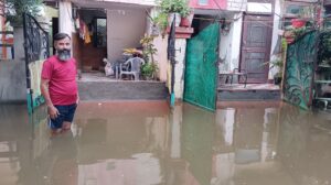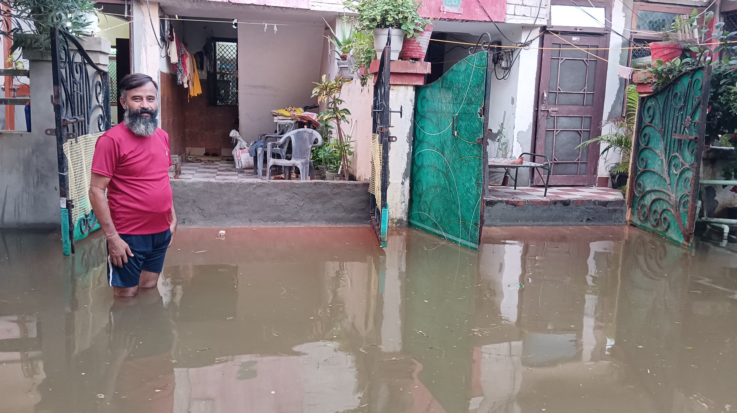 टाउनशिप। गंगा सिटी कॉलोनी कोयला अलीपुर रोड में यमुना के बाढ़ का पानी घरों के सामने 2 फुट तक आ गया है। बाढ़ के पानी को घरों में घुसने से रोकने के लिए कालोनीवासियों ने घरों के दरवाजे पर लगभग 2 फुट ऊंची ईंट और मसाले से बांध बना दिया है। जिससे पानी घरों में नहीं घुसे।