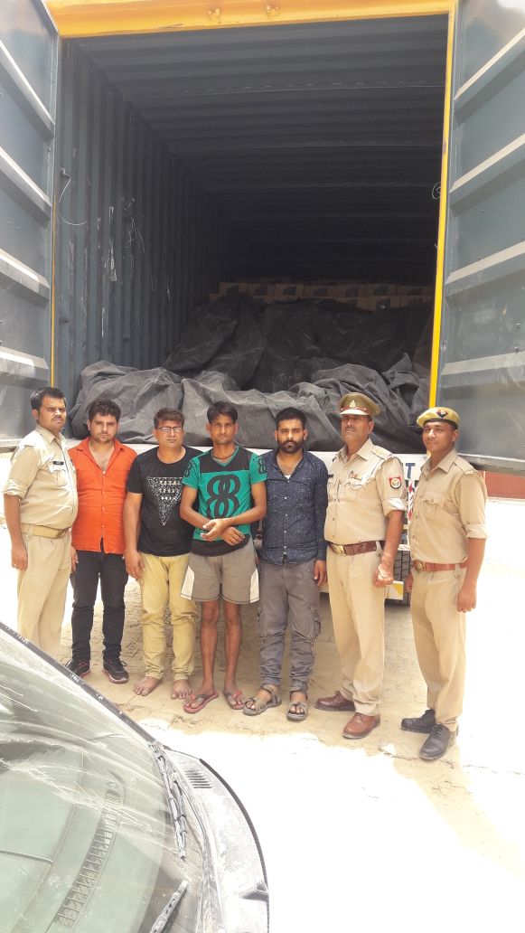नशा कारोबारियों के बिरूद्व चलाए जा रहे पुलिस अभियान के क्रम में शनिवार को मुखबिर ने पुलिस को सूचना दी कि एक ट्रक महुअन टोल से पहले खडा है। उसमें हरियाणा मार्का अंग्रेजी शराब भरी है। सूचना पर स्वाट टीम ने ट्रक की घेराबंदी की तो उसमें मौजूद तस्करों ने तमंचे से पुलिस पार्टी पर फायर कर दिया। पुलिस ने बचाव करते हुए ट्रक में सवार चार लोगों को गिरफतार कर लिया। शराब के कागज मांगे गए तो कोई वैध कागज उनके पास नहीं था। शराब को तस्करी को गुजरात ले जाया जा रहा था। मौके पर टीम ने 740 शराब की पेटी बरामद की और बयाना भरतपुर निवासी राकेश कुमार पुत्र तोताराम, पथौली आगरा निवासी धर्मेन्द्र कुमार पुत्र तोताराम व रवि पुत्र नरेन्द्र और सुरजीत निवासी टांडा रिजासी जम्मू कश्मीर को गिरफतार कर जेल भेजा है। इनसे पुलिस ने एक तमंचा मय दो जिंदा कारतूस व फर्जी बिल और बिल्टी भी बरामद की है। शराब माफियाओं को गिरफतार करने वालों में स्वाट टीम प्रभारी हरवेन्द्र मिश्रा, उपनिरीक्षक प्रदीप कुमार, राकेश कुमार और कांस्टेबल लोकेश, सुरेन्द्र, हरवीरसिंह, रोहित कुमार, प्रमोद कुमार, गौतम कुमार, अभिजीत सिंह,आर्यन दुबे, नरेन्द्र कुमार, वसीम अकरम, अवनीश कुमार, चालक सुदेश कुमार आदि मौजूद थे।