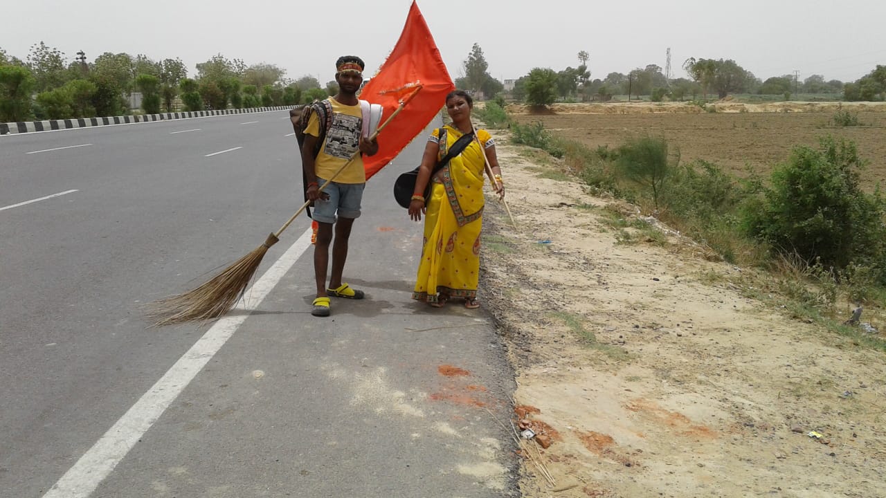 टपरापरकोट धाम आगरा के बंटी बाल्मीकि और उसकी पत्नी कवि अपने गांव से नगर कोट देवी की यात्रा को संकल्प के साथ निकले हैं। पत्नी देवी का लाल झंडा लेकर चल रही है तो पति आगे आगे हाथ में झाडू लेकर रास्ता साफ करते हुए चल रहा है। भयंकर लू के थपेडे भी उनको बेचैन नहीं कर रहे हैं। बंटी कहता है कि वे रोजाना दस किलोमीटर की यात्रा पूरी करते हैं। इसके बाद वे विश्राम करते हैं। बंटी बताता है कि पति पत्नी आगरा के एक अस्पताल में काम करते हैं। उन्होने देवी दर्शन को चार माह की छुटटी ली है। व ेअब देवी के दर्शन कर नवरात्रा के बाद लौटेंगे। वह कहता है ि कइस रास्ते पर पापी भी चल रहे हैं। रास्ता पर उनके पापों से भर गया है। क्यों कि वे पवित्रता लिए देवी के दर्शन को जा रहे हैं। इसलिए रास्ते के विकारों को भी झाडू के माध्यम से समाप्त करना चाहते हैं। उनके पैर पवित्र रास्ते पर पडे, ऐसा इस लिए किया जा रहा है। बंटी कहता है कि समाज में बुराई बढ गई हैं। मन्दिरों के आसपास गंदगी का ढेर लगा रहे हैं। मदिरा मांस का सेवन किया जा रहा है। वह कहता है कि साहब, वे पतिपत्नी नवरात्रों में नगरकोट देवी के मन्दिर की भी झाडू से सफाई करेंगे। आसपास की गंदगी को रोजाना साफ किया जाएगा। वह कहता है कि उनके केवल दर्शन की अभिलाषा है।