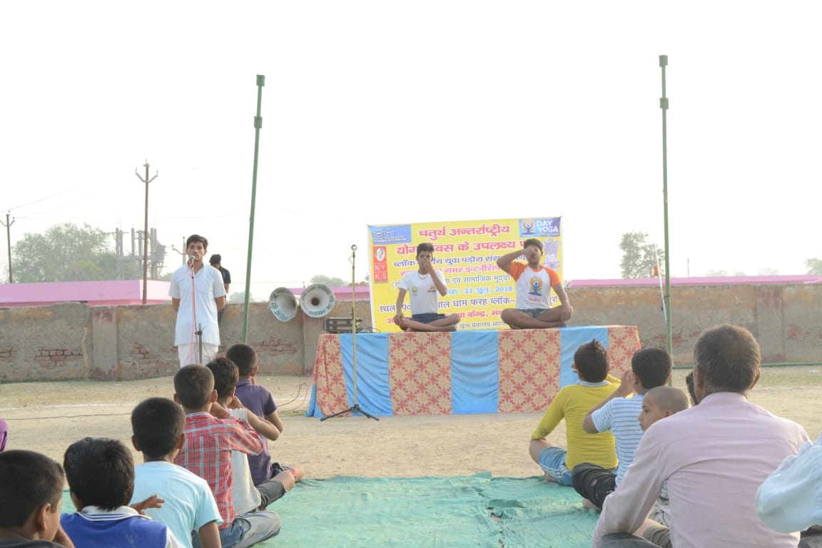 फरह।चतुर्थ अंतरराष्ट्रीय योग दिवस के उपलक्ष्य में ब्लॉक स्तरीय युवा पड़ोस संसद कार्यक्रम एंव योग अभ्यास स्वच्छता एंव सामाजिक मुद्दों पर संगोष्टी का आयोजन नेहरू युवा केन्द्र के माध्यम से आज दिनांक 21 जून को कार्यक्रम ब्लॉक फरह में सेठ प्रेम सुखदास इंटर कॉलेज दीनदयाल धाम में सम्पन्न हुआ जिसमे ब्लॉक फरह के युवा मंडलो के पदाधिकारी एंव सदस्यों ने संयुक्त रूप से भाग लिया जिसमे कार्यक्रम के मुख्य अथिति कृष्णकांत पचौरी जी चेयरमैन फरह,योग शिक्षक संजय जी ,मुख्य वक्ता राम पाठक,अध्यक्षता नंदकिशोर प्रधान सहजादपुर ने की नरेंद्र सिंघल जी,राजकुमार जादौन, शुभम शर्मा