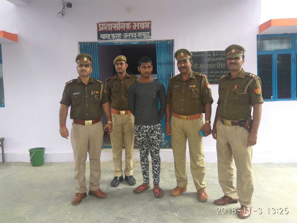थाना फरह में दर्ज मुकदमे में छेड़छाड़ एवं पोक्सो एक्ट में वांछित चल रहे आरोपी को फरह पुलिस ने पकड़ कर जेल भेज दिया है। थाना प्रभारी राकेश कुमार ने बताया मुकदमा अपराध संख्या 558 सन 2018 धारा 354 क 504,506 आईपीसी 7/8 पोक्सो एक्ट में वांछित अभियुक्त पंकज पुत्र चंद्रपाल सिंह को जोकि नगला साखी थाना गोवर्धन निवासी के यहां दबिश देकर गिरफ्तार कर जेल भेज दिया है।