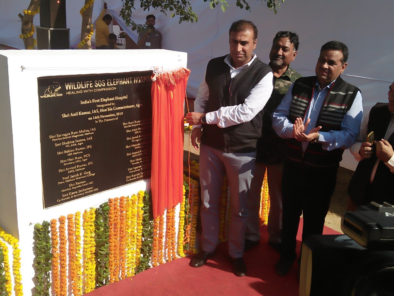 हाथी अस्पताल का उद्घाटन आगरा के कमिशनर श्री अनिल कुमार जी द्वारा किया गया जिनके साथ जिलाधिकारी, मथुरा श्री सर्वज्ञ राम मिश्रा, वन संरक्षक, आगरा श्री जावेद अख्तर, डी एफ ओ, मथुरा श्री अरविंद कुमार, उप-वन संरक्षक, चम्बल प्रोजेक्ट्स, श्री ऐ.के श्रीवास्तव, हेल्प आगरा और सत्यमेव जयते ट्रस्ट के संस्थापक श्री मुकेश जैन एवं सुप्रीम कोर्ट मोनिटरिंग कमेटि के सदस्य श्री रमन जी भी मौजूद रहे।