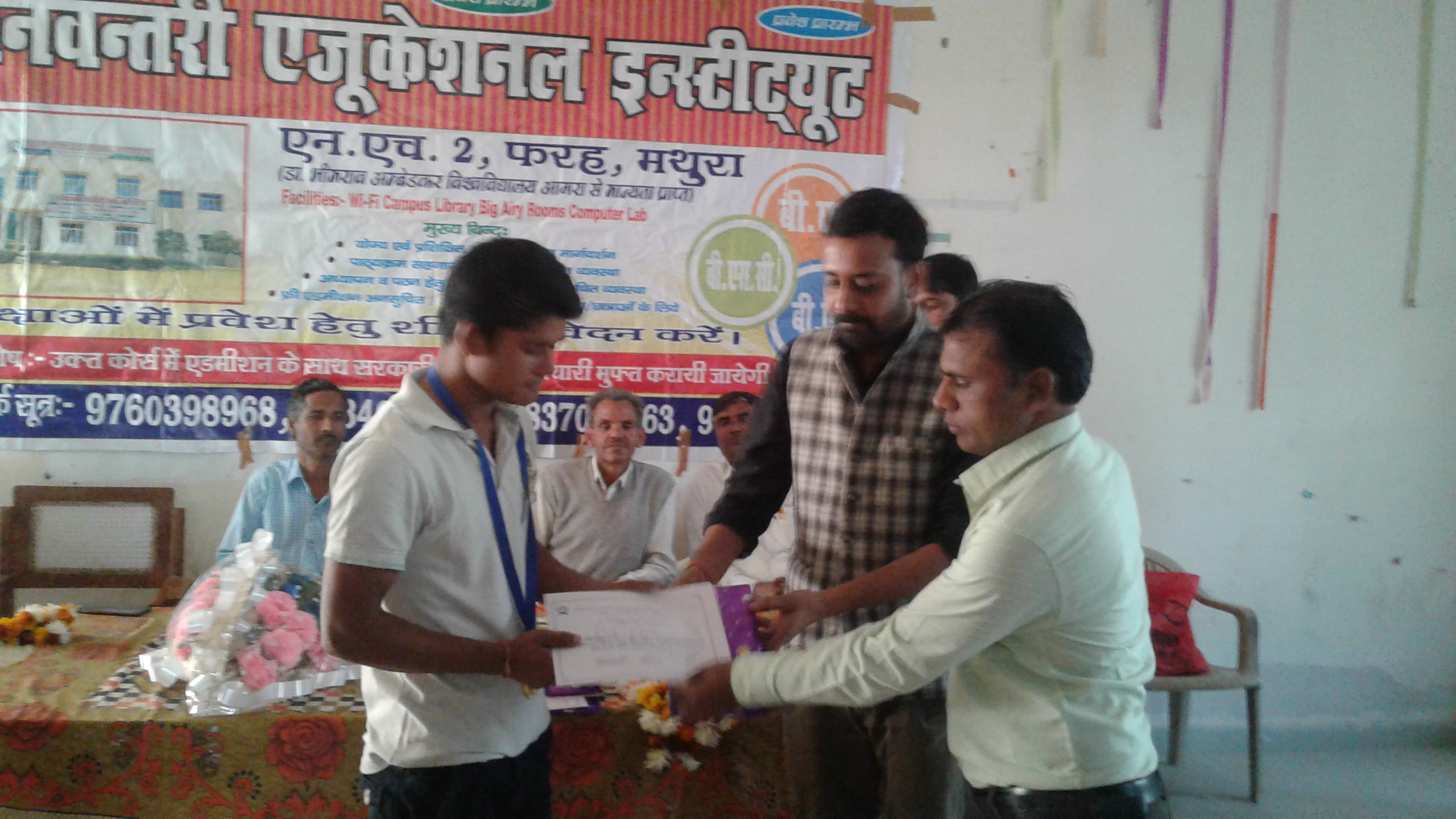 इस मौके पर मुख्य अतिथि कोंह के इंटरकालेज के चेयरमेन नारायण सिंह ने कहा कि शिक्षा के क्षेत्र में लडकियां आगे बढ रही हैं। उनहोने कहा कि शिक्षा के निजीकरण से कुछ समस्याएं पैदा हुई हैं। उनको मिलकर ठीक करना होगा। कालेज सचिव प्रिंयक सारस्वत ने कहा कि मेहनत का कोई विकल्प नहीं हैं। स्टूडेंटस को कॅरियर में मुकाम हासिल करने के लिए मेहनत करनी होगी। उन्होने कहा कि वर्तमान में कालेजों में उचितरूप छात्रों की उपस्थिति हैरतगंेज है। इस मौके पर भरत गोयल ने कहा कि कालेजों में इस तरह की प्रतियोगिताएं छात्रों के मध्य विश्वास को बढाती हैं। इस तरह की परीक्षाएं छात्रों को आगे बढने का एक मंच प्रदान करती हैं। कार्यक्रम के अंत में प्रथम स्थान प्राप्त रवि कुमार पुत्र ओमकार, धीरज पुत्र शिव सिंह , द्वितीय स्थान पर रहे चक्रधर, और तृतीय स्थान पर आए बंटी, होशियार सिंह, नन्दराम को पुरस्कृत करने के साथ दस अन्य को भी प्रशस्तिपत्र मुख्य अतिथि व बिशिष्ट अतिथियों द्वारा प्रदान कर उनको मनोबल बढाया गया। कार्यक्रम की अध्यक्षता भरत गोयल और संचालन मुकेश जादौन ने किया। इस मौके पर श्याम ठाकुर, भोला चैधरी और शिक्षक शिक्षिकाएं उपस्थित थे।