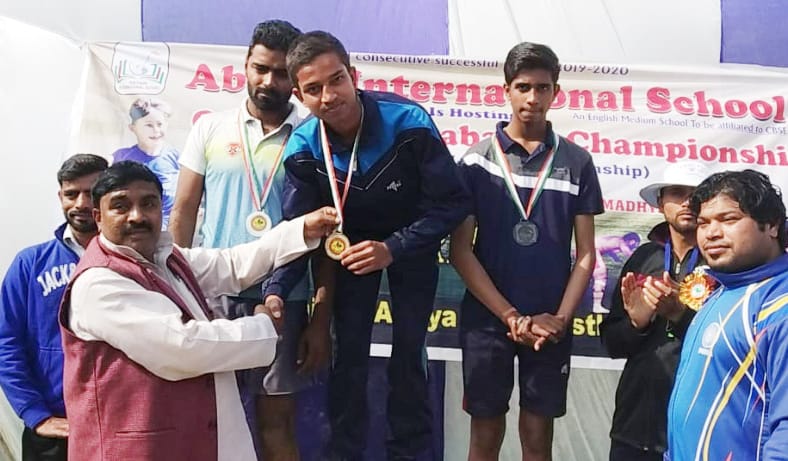गोवर्धन। युवा भारत स्पोर्ट खेल संघ के द्वारा संभल के चंदौसी तहसील के अंतर्गत अवताभ इंटर नेशनल स्कूल में प्रदेशी स्तरीय खेलकूद प्रतियोगिता में एथलीट में ग्राम गांठौली के प्रशांत उपाध्याय लंबी कूद में 6.83 मीटर में गोल्ड मैडल प्राप्त किया। इस प्रतियोगिता में दूसरे नंबर सोंनू हरियाणा रहे। अतिथियों में अपर पुलिस अधीक्षक अनुज कुमार व चंदौसी के चेयरमैन चै. वसीर ने खिलाड़ियों को सम्मानित किया। प्रतियोगिता में देश के कोने-कोने से पहुंचे खिलाड़ियों ने प्रतिभाग किया। खिलाड़ी प्रशांत उपाध्याय ने बताया कि अलग-अलग वर्गों में हुई प्रतियोगिता में देश के कई प्रांतों से आये खिलाड़ियों ने भाग लिया। उन्होने उम्र 17 के अंतर्गत दर्जनों खिलाड़ियों को पीछे कर प्रतियोगिता जीती है। मथुरा की ओर से प्रशांत ने प्रतिनिधित्व किया। इस अवसर पर आयोजक संघ के अध्यक्ष आशू सिंह, उत्तर प्रदेश एथलेटिक टीम कोच अर्जुन कोली, अलीगढ़ मुस्लिम यूनिवर्सटी के खेल कोच उम्मेद अली खां, प्रबंधक मोहम्मद फारूक, खिलाड़ियों में राजकुमार सिंह, अंकित, अखिल गुप्ता आदि थे।