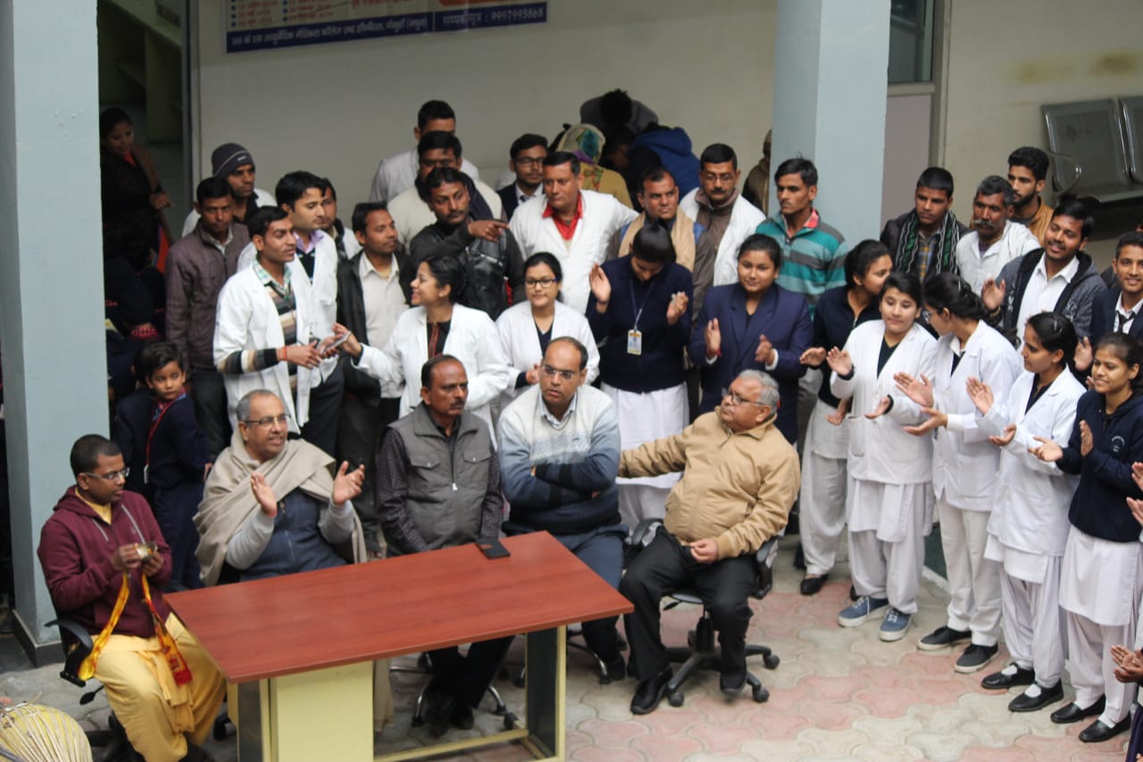 एस. के.एस आयुर्वेदिक हॉस्पिटल के प्रांगण में निःशुल्क स्वर्ण प्राशन बिंदु ड्रॉप्स पिलाकर किया टीकाकरण