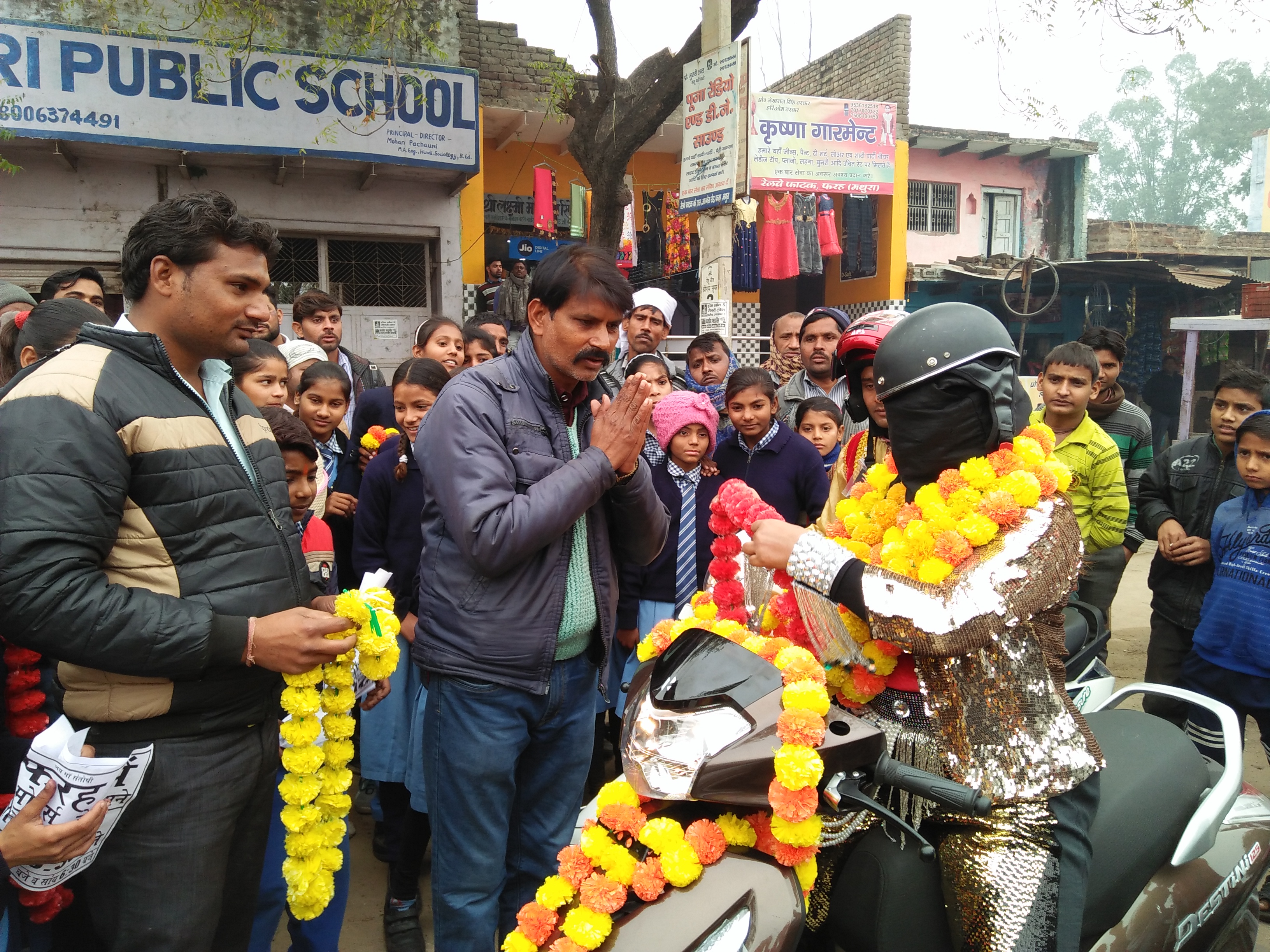 फरह।जादू शो से पूर्व कस्बे में बाइक रैली निकाली। जिसमें जादूगरनी प्रिंसेस संध्या ने आंखों पर काली पट्टी बांधकर कस्बे में स्कूटी चलाई। स्वच्छता और मनोरंजन से भरपूर यह कार्यक्रम कस्बे में होगा। बाइक रैली के दौरान एसबी पचोरी पब्लिक स्कूल के प्रबंधक मोहन पचौरी एवं बच्चों ने एक जादूगरनी का माला डालकर स्वागत किया। इस दौरान से खोलो उपस्थित रहे।जादूगर सीपी शर्मा ने बताया 25 जनवरी से जादू की कला की शुरुआत हो रही है और नए नए खेल दिखा कर लोगों का दिल जीता जाएगा।