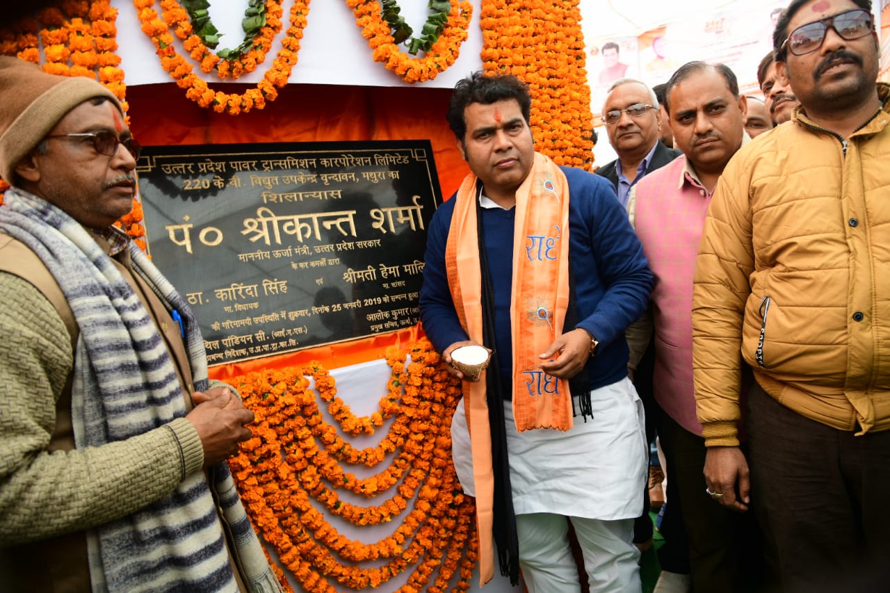 मथुरा,(परीक्षित कौशिक):- ऊर्जा मंत्री पं. श्रीकान्त शर्मा ने शुक्रवार को वृन्दावन के ग्राम- जैंत में बनने वाले 220 केवी क्षमता के विद्युत पारेषण उपकेंद्र का शिलान्यास किया।