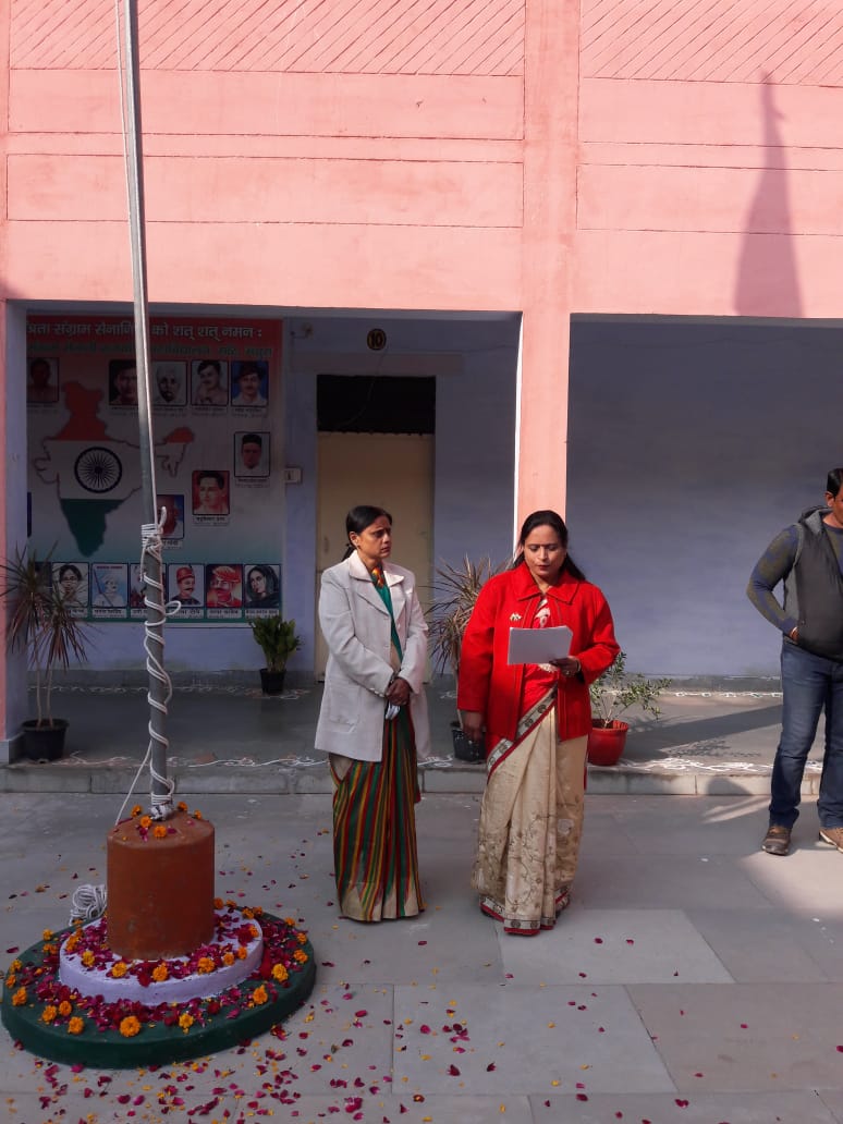 छात्र-छात्राओं को सम्बोधित करते हुए प्राचार्य डाॅ. मीनाक्षी वाजपेयी ने राष्ट्रीय पर्वों के आयोजन की औपचारिकता को महत्वपूर्ण बताया। उन्होंने राष्ट्र के संतुलित-सर्वांगीण विकास की दृष्टि से संविधान और गणतान्त्रिक व्यवस्था को अनिवार्य बताया तथा इस बात पर विशेष बल दिया कि सर्वाधिक युवा जनसंख्या वाला राष्ट्र होने के नाते भारत के पास विकास की सर्वाधिक सम्भावना है और इस युवा ऊर्जा को सही दिशा-निर्देश देने का उत्तरदायित्व अध्यापकों एवं बुद्धिजीवियों का है। अन्त में उन्होंने महाविद्यालय प्रांगण में वृक्षारोपण कर स्वस्थ पर्यावरण के प्रति नागरिकों के कर्तव्य का भी बोध कराया।