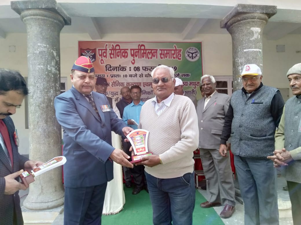 अध्यक्ष खेमचंद शर्मा नगेश महासचिव कैप्टन हरिहर कै निरंजन प्रसाद जवाहर लाल भंवर सिंह ,केलाश चंद्र ,लाखन सिंह, प्रेम सिंह पूर्व सैनिक निगम के सूबेदार तथा मेजर लक्ष्मण सिंह ए आर आगरा के जैन सिंह पाल व ममता मांटेसरी स्कूल वृंदावन के प्रबंधक मदन गोपाल बनर्जी का प्रतीक चिन्ह देकर सम्मान किया. भूतपूर्व सैनिकों को केंद्र एवं राज्य द्वारा सैनिकों के हित के लिए चलाई जा रही योजनाओं की जानकारी दी | इस अवसर पर वीर नारी एवं उनके परिजन तथा सैकड़ों की संख्या में पूर्व सैनिक उपस्थित रहे
