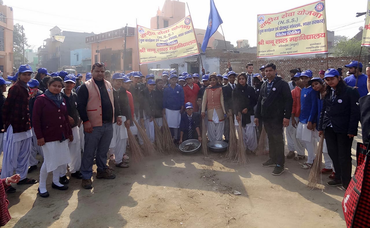 गोवर्धन। बाबूलाल महाविद्यालय की राष्ट्रीय सेवा योजना इकाई के सात दिवसीय विशेष शिविर के पाँचवे दिन स्वयंसेवक छात्र-छात्राओं ने ग्राम राल के मैन बाजार, सब्जी मंडी में और पौराणिक महत्व के विहारवन बल्देव कुंड पर सफाई कार्य किया।