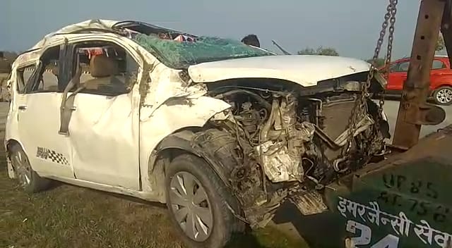मांट। वृंदावन से बाँके बिहारी के दर्शन कर लौट रहे मुंबई के एक परिवार की गाड़ी एक्सप्रेस वे पर जानवर को बचाने के चक्कर में डिवाईडर से टकरा गई,जिसमें एक व्यक्ति की मौत हो गयी,तीन महिलाओं समेत 5 लोग घायल हो गए।