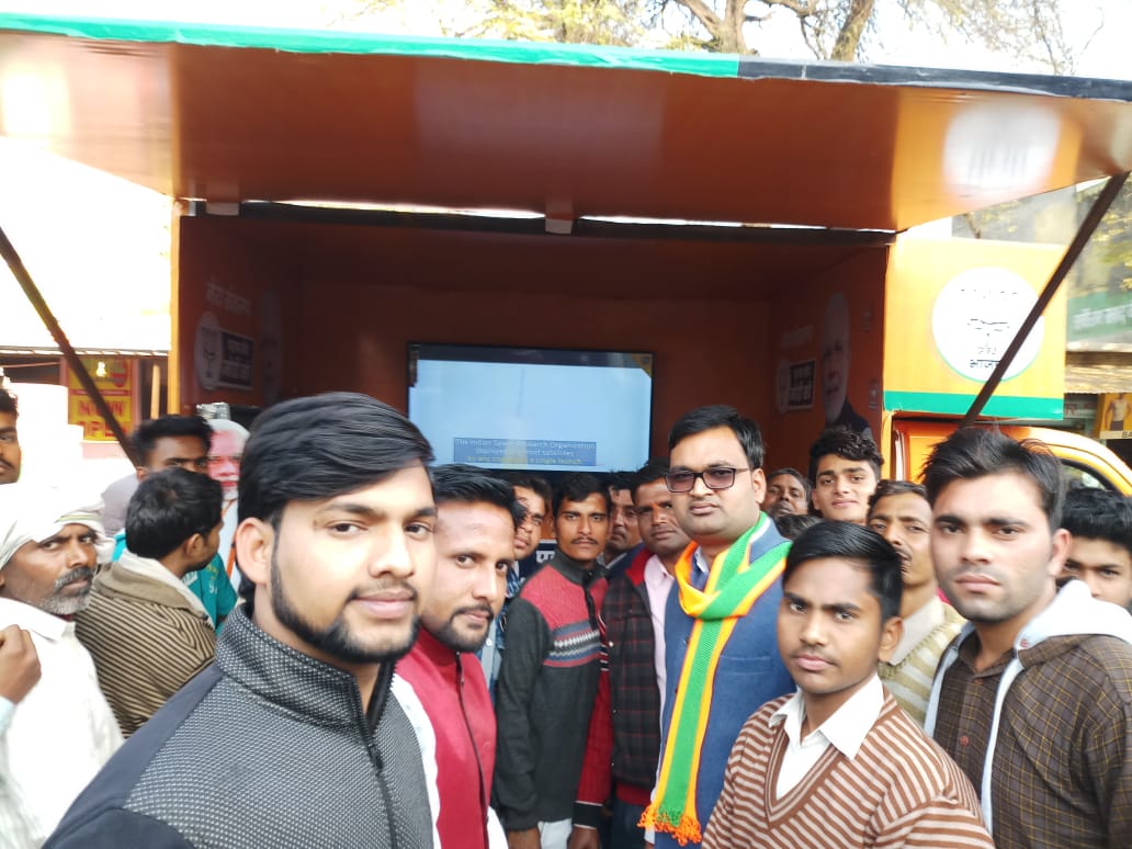 मांट। पहला वोट मोदी को कार्यक्रम के दौरान सोमवार को क्षेत्र में एलईडी लगी वैन से भाजपा सरकार की नीतियों का प्रचार प्रसार किया गया।