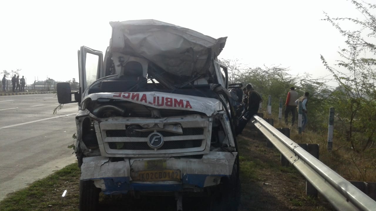 यमुना एक्सप्रेस वे पर ओवर स्पीड व चालक की नींद की झपकी आने से मंगलवार की सुबह एम्बुलेंस डिवाईडर तोड़ कर दूसरी तरफ के रोड पर आ गयी,और आगरा की ओर से आ रही आई टेन कार से टकरा गयी,टक्कर इतनी जबरदस्त थी कि दूर तक आवाज सुनाई दी। आनन फानन में टोल चौकी प्रभारी और जेपी ग्रुप का राहत बचाव दल मौके पर पहुंच गया। गैस कटर से एम्बुलेंस में फंसे लोगों को निकाला गया।पर तब तक एम्बुलेंस सवार सात लोग काल के गाल में समा चुके थे। वहीं कार में सवार गम्भीर घायल एक महिला ने बाद में अस्पताल में दम तोड़ दिया। इनकी हुई मौत,1 हरीसिंह पुत्र चमन सिंह निवासी चाँद नगर जम्मू,2 ताहिर अन्सारी पुत्र नूर मोहम्मद निवासी दुर्गा कॉलोनी फोकल पॉइंट लुधियाना,3 सुहैल अहमद निवासी गंगा नगर अलवर,4 गुलशन पत्नी सुहैल,5 रिजवान पुत्र सुहैल,6 आसमाँ पत्नी जहीर,7 जहाँगीर आलम निवासी शास्त्री पार्क गली नम्बर 15 नाइ दिल्ली यह सभी मूल रूप से ओरंगाबाद बिहार के रहने वाले थे। जबकि आई टेन में सवार सरोज शर्मा पत्नी दिनेश शर्मा निवासी राजपुर कॉलोनी टूंडला ने अस्पताल में दम तोड़ दिया। इसके अलावा साकिब,नसरुद्दीन, सोनू उर्फ विश्वास,निखिल शर्मा को अस्पताल में भर्ती कराया गया है।