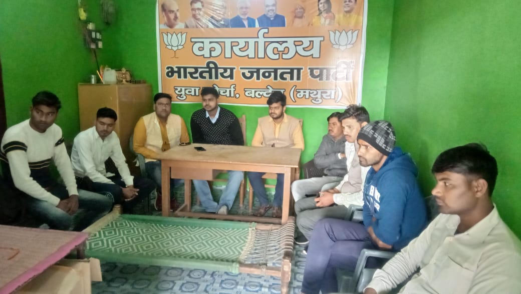 बलदेव:- में आज प्रधानमंत्री नरेंद्र मोदी द्वारा मन की बात का कार्यक्रम को लाइव भाजपा युवा मोर्चा के कैम्प कार्यालय पर पार्टी पदाधिकारी एवं कार्यकर्ता के द्वारा सुनी गई। मोर्चा के मण्डल अध्यक्ष राहुल वैदिक ने कहा कि बलदेव क्षेत्र के समस्त सेक्टरों पर प्रधानमंत्री के मन की बात का लाइव दिखाया गया है। और 2019 के लोकसभा के चुनाव में हर सेक्टर पर बूथ रचना अधिक से अधिक वोटों को मतदान केंद्र तक ले जाने के लिये की है। इस दौरान राहुल वैदिक अध्यक्ष युवा मोर्चा, अनुज पाठक, विशवेन्द्र सिकरवार,चेतन उपाध्याय, अंशुल अग्रवाल, हेमेन्द्र सिकरवार, बादल बंसल, लक्ष्मण पांडे, राम किशोर अग्रवाल आदि मौजूद थे।