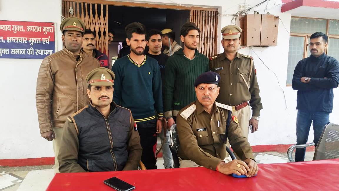 मांट। थाना नौहझील पर केदार निवासी फरीदमपुर थाना नौहझील द्वारा अज्ञात व्यक्तियो द्वारा गौशाला का प्रस्ताव पास कराने के लिए विवेचना अधिकारी बनकर दो लाख अस्सी हजार रूपये ले लेने के सम्बन्ध मे पंजीकृत कराया था। जिसके अनावरण एवं नामजदों की गिरफ्तारी हेतु वरिष्ठ पुलिस अधीक्षक महोदय मथुरा द्वारा निर्देशित किया गया।थाना पुलिस ने घटना का सफल अनावरण कर सोमवार को घटना में शामिल अल्ताफ पुत्र स्व. अब्दूल गफूर निवासी हिमायत नगर थाना औरंगाबाद जनपद बुलन्दशहर व मुकेश कुमार शर्मा पुत्र अमीचन्द निवासी 581 चाँदपुर रोड कचहरी के पास थाना कोतवाली सिटी बुलन्दशहर को गिऱफ्तार किया गया । गिरफ्तार किये गये अभियुक्तगणो के कब्जे से धोखाधड़ी करके लिये गये रूपये में से दो लाख रूपये भी बरामद हुए । गिरफ्तार अभियुक्तो को थाना नौहझील पुलिस द्वारा आवश्यक कर जेल भेज दिया गया है। थाना प्रभारी निरीक्षक सूरज प्रकाश शर्मा ने बताया कि नामजदों को बाजना रोड स्थित चौधरी ढाबा के सामने से गिरफ्तार किया गया है।