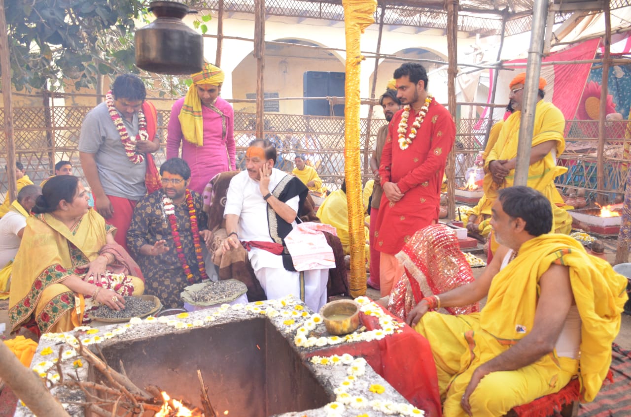 इस अबसर पर उन्होंने यज्ञ शाला में ब्रज के राजा दाऊजी महाराज के पुष्पार्चन में भी पूजा अर्चना की।