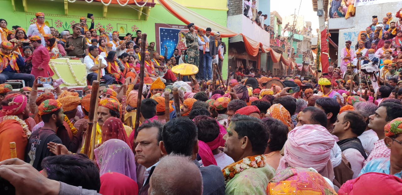रंगीली गली आज के आंनद स्वर्ग और अपवर्ग के सुख को फीका करता मालूम दे रही है । हुरियारिनें हाथों में चमचमाती लाठियां लिए घूंघट की ओट से हुरियारों पर तड़ातड़ प्रहार कर रही हैं। हुरियारे अपनी ढालों पर इन प्रहारों को झेल कर अपने को बचा रहे है रहे । स्त्री आज उन्मुक्त है और पुरुष रक्षा आवरण के होते हुए भी असहाय होता दिख रहा है। पुरुष का नारी शक्ति के सामने समर्पण और प्रतिकार न कर पाने का यह दृश्य दुनिया को नारी तत्व की प्रधानता का सन्देश दे रहा है कि संसार मातृत्व शक्ति से द्वारा ही संचालित है। इस दृश्य को देखने के लिए देश विदेश से लाखों का जनसैलाब उमडा हुआ है।