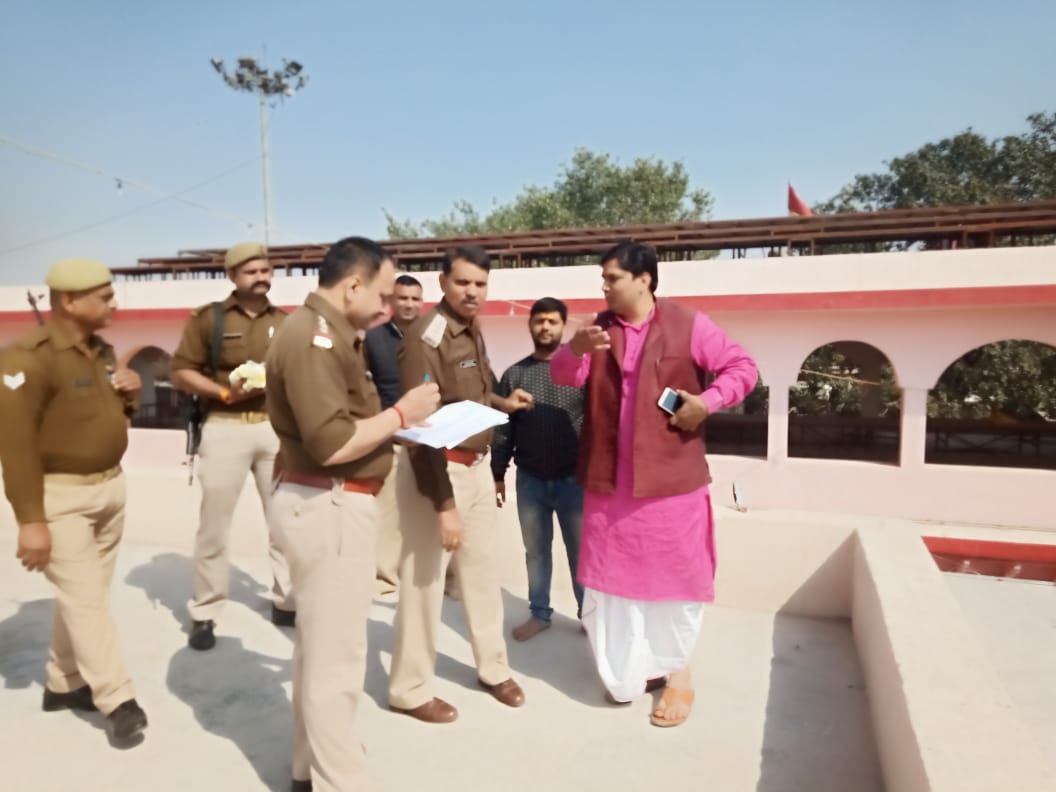 बलदेव:-विश्व प्रसिद्ब ठाकुर श्री दाऊजी महाराज के हुरंगा की तैयारियों की संदर्भ में अजबक्षेत्राधिकारी महावन प्रबल प्रताप सिंह, प्रभारी निरीक्षक सुनील कुमार सिंह ने मन्दिर में चल रही तैयारियों का निरीक्षण कर मन्दिर रिसीबर राम कटोर पांडेय से आवश्यक जानकारी ली। साथ दोनों अधिकारियों ने बलदेव के बाजारों में निरीक्षण कर विभिन्न स्थानों पर बेरियर लगाने के लिये स्थानों का चयन किया। रंग भरनी एकादशी से प्रशासन ने चार पहिया वाहनों पर आज से ही प्रतिबंध लगा कर बाजारों में जाम की समस्या को कम किया। इस दौरान सीओ प्रबल प्रताप सिंह ने बताया की श्री दाऊजी महाराज के विश्व प्रसिद्ध हुरंगा की तैयारियों के लिए वाहनों की पार्किंग राया एंव मथुरा से आने वाले वाहनों की पुराना बस स्टैंड,बलभन्द्र इण्टर कालेज,एंव जिला अस्पताल के फील्ड के साथ आगरा एंव सादाबाद से आने वाले वाहनों को मेला फील्ड के साथ विभिन्न स्थानों पर व्यवस्था की गई है। बाजारों में जाम की स्थिति से निपटने के लिए चार पहिया वाहनों पर पूर्ण रूप से प्रतिबंध लगा दिया गया है ।व्यापारी भाई भी इस व्यवस्था में सहयोग बनाए। जिससे दाऊजी महाराज का हुरंगा,एंव होली का पर्व शांति पूर्ण तरीके से संपन्न हो।