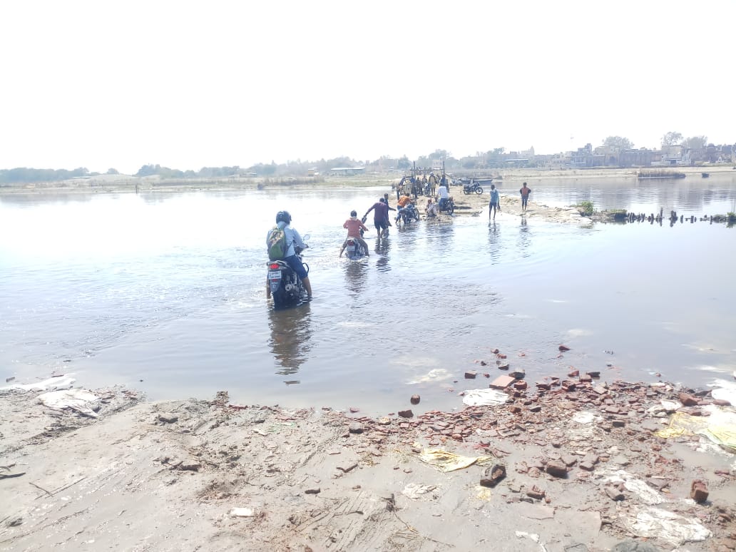 मांट। हजारों की तादाद में लोग रोजाना जान हथेली पर रखकर मांट से वृंदावन पहुंच रहे हैं,तीन फुट गहरे पानी में चलकर पोंटून पुल तक लोग पहुंच पाते हैं। मांट को वृंदावन से जोड़ने वाला पोंटून पुल को पिछले कई वर्षों से लोक निर्माण विभाग का प्रांतीय खण्ड चला रहा है।पर विभाग इसकी व्यवस्थाओं को लेकर कभी गम्भीर दिखाई नहीं दिया,अब से करीब एक माह पूर्व यमुना में जल स्तर बढ़ने से मांट की ओर की मिट्टी पानी मे ढह गई,हालांकि पुल को कोई नुकसान नहीं हुआ।पर तब से लेकर अभी तक विभाग ने कोई ध्यान ही नहीं दिया। हालात यह हैं कि पुल से मांट की ओर तेज वहाब में पानी चल रहा है,सोमवार की सुबह करीब तीन फुट पानी से बाइक,पैदल,घोड़ा गाड़ी,बैल गाड़ी,साइकिल निकल रहे थे,और यह हाल एक माह से है।रविवार को रंग भरनी एकादशी के दिन भी इस पानी से होकर पुल तक पहुंचने ले चक्कर मे आधा दर्जन से अधिक दो पहिया वाहन पानी मे गिर गए,कई वाहन चालकों को चोटें भी आईं।मात्र 5 किलोमीटर है मांट से वृंदावन पोंटून पुल से होकर मांट से वृंदावन की दूरी मात्र 5 किलोमीटर है,इस पोंटून पुल को पार कर रोजाना हजारों ग्रामीण वृन्दावन जाते हैं,जिसमें बड़ी तादाद में दूधिया व सब्जी आदि बेचने वाले भी शामिल हैं।क्यों कि पानीगांव होते हुए वृंदावन की दूरी 16 किलोमीटर है।