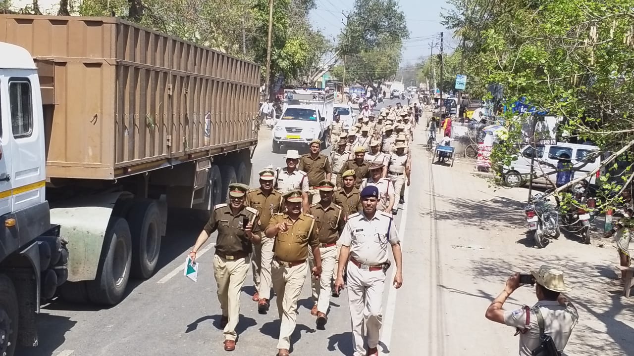 होली और मतदान के प्रति लोगों में विश्वास कायम करने के लिए थाना पुलिस और अर्ध सैनिक बलों ने कस्बा के बाजार में फ्लैग मार्च किया,इस दौरान प्रभारी निरीक्षक प्रदीप कुमार,एसएसआई दिनेश कुमार शर्मा आदि मौजूद थे।