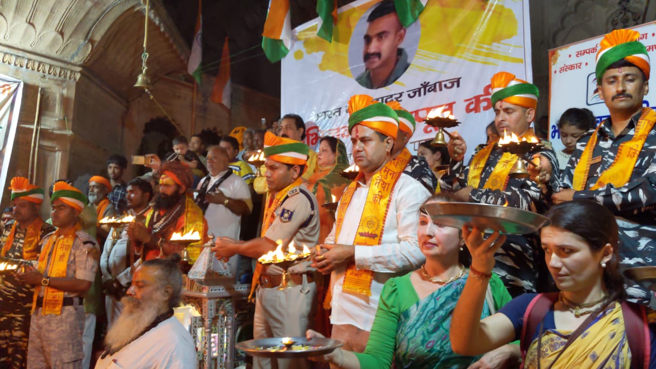मथुरा | पुलवामा शहीदों की याद में बिगत दिवस वृंदावन में सीआरपीएफ के जवानों की ओर से एक भव्य कार्यक्रम आयोजित किया गया, इसमें हमले में शहीद हुए जवानों की याद में श्रद्धांजलि दी गई और अमर ज्योति प्रज्वलित की गई | इस कार्यक्रम के खास अतिथि सपा नेता पं दीपक गौर रहे |
