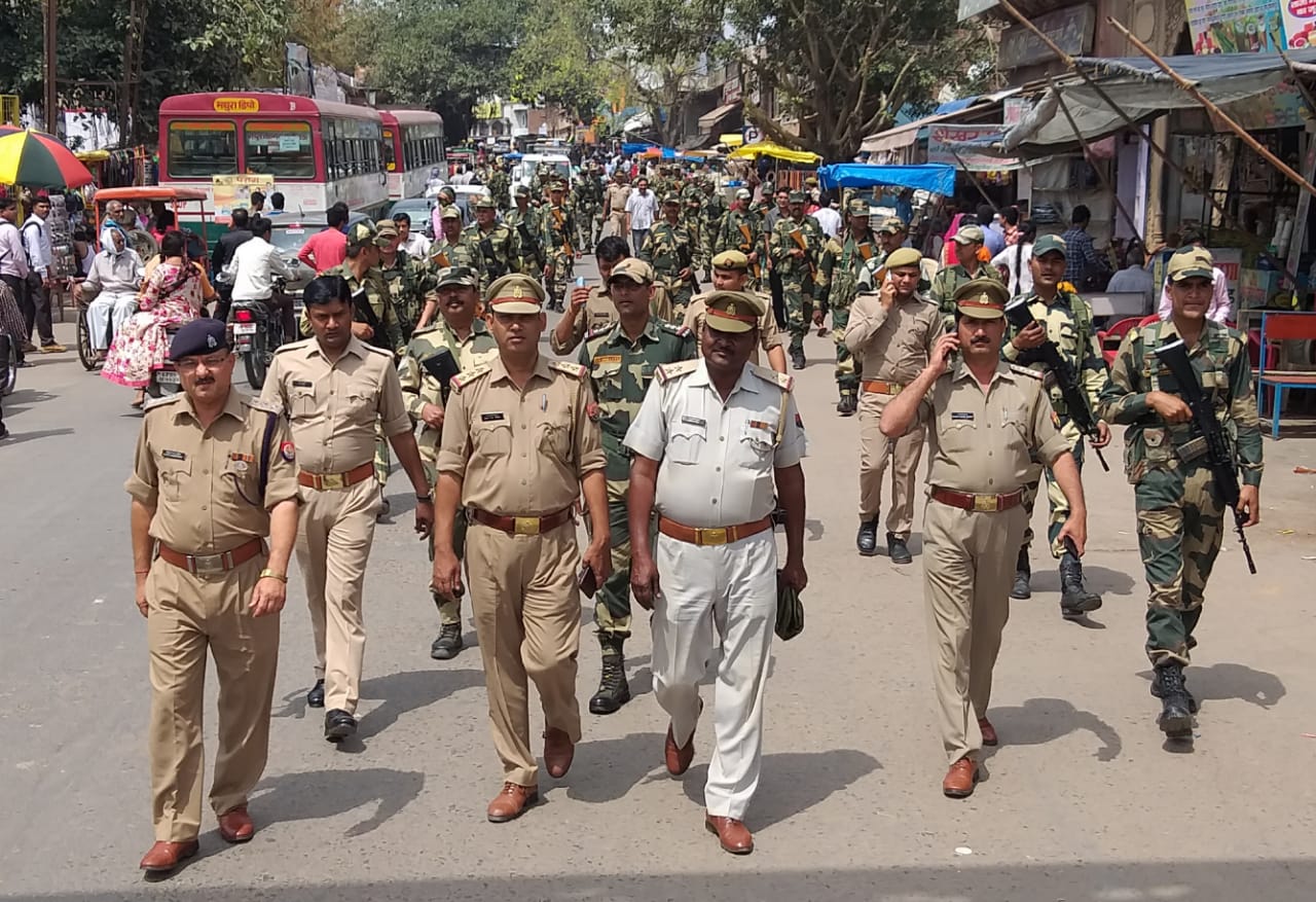 -फोर्स ने कस्बा से लेकर देहात में फ्लैग मार्च किया
