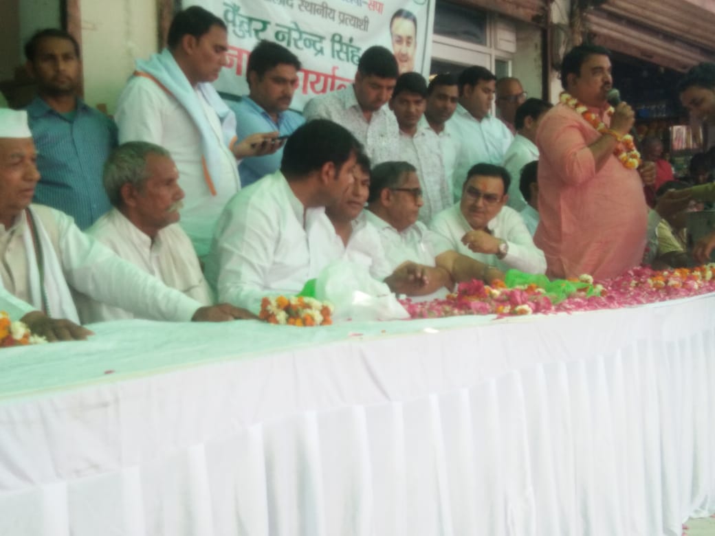 मथुरा | मथुरा लोकसभा सीट पर खड़े महागठबंधन प्रत्याशी कुंवर नरेंद्र सिंह के पक्ष में छाता विधानसभा में लोकसभा चुनाव संचालन हेतु कोसीकलां कस्बे में जिलाध्यक्ष रामरसपाल पौनियाँ की अगुवाई में चुनाव कार्यालय का शुभारंभ किया गया | इस मौके पर पूर्व मंत्री पण्डित श्यामसुंदर शर्मा, ठाकुर अतुल, पंडित जगदीश सुपनिया सिसौदिया, कुंवरचंद रावत, जगपाल चैयरमैन, राजू चौधरी लालपुर, डालचंद चौधरी व समस्त छाता विधानसभा संगठन पदाधिकारी व कार्यकर्ता मौजूद रहे।