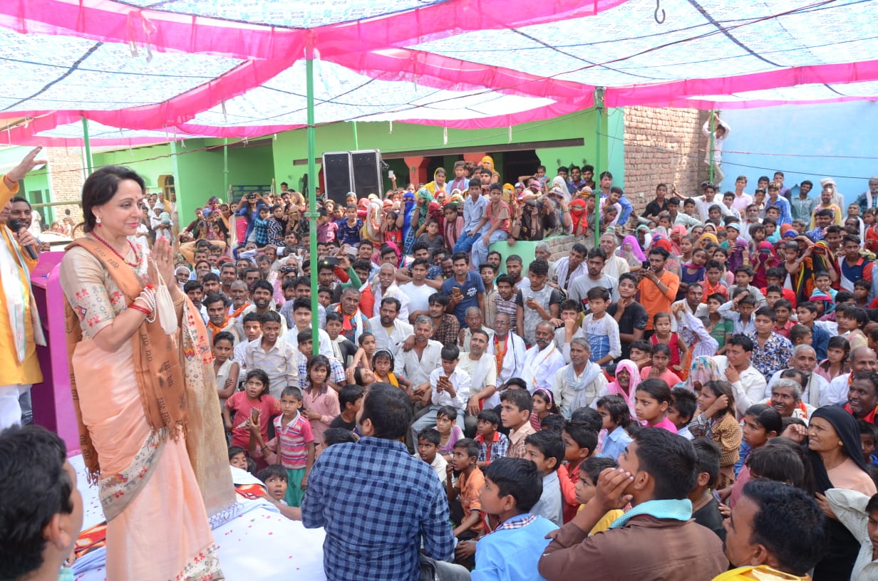 मथुरा|लोकसभा क्षेत्र की लोकप्रिय भाजपा प्रत्याशी श्रीमती हेमा मालिनी जी ने आज छाता विधानसभा के गांव सेही, दलौता एवं जावली, आगराला, नौगॉव, तरौली आदि क्षेत्र में जनसम्पर्क कर सभा को सम्बोधित करते हुए कहा आपका एक एक वोट मोदी जी को मजबूत करेगा, आपको तय करना है कहाँ है एक तरफ वो लोग है जो भारत की बर्बादी के नारे लगाने वालो को समर्थन कर रहे थे, के तरफ भारतीय जनता पार्टी जो बात रखने से पहले माँ भारती का उदघोस करती है। कैबिनेट मिनिस्टर चौ लक्ष्मीनारायण ने कहा पाकिस्तान और चीन कभी भारत पर हावी होते थे आज मोदी के नेतृत्व में ये नया भारत है जो डोकलाम में चीन को पिछे भी कर सकता है और पाकिस्तान को घुस कर मार भी सकता है