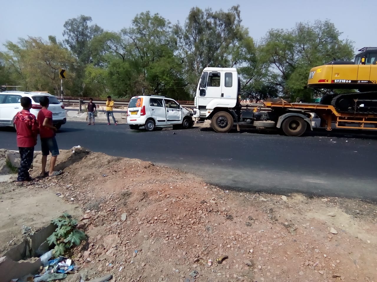 फरह:-पर पण्डित दीन दयाल सामुदायिक स्वास्थ्य केन्द्र के सामने एक सफेद रंग की कार व आगरा की ओर से आ रहे ट्रॉला की भिड़ंत हो गई, इसमै कार का अगला हिस्सा बिल्कुल क्षतिग्रस्त हो गया | दर असल गलत साइड से सर्विस रोड पर आगरा की ओर जा रही थी |उसी सर्विस रोड पर उल्टी दिशा से ट्रॉला आ रहा था |कार में सवार 2 लोग घायल हो गए ‘| मौके पर पुलिस पंहुच गई | क्षतिग्रस्त वाहनों को हाइवे से हटाया |
