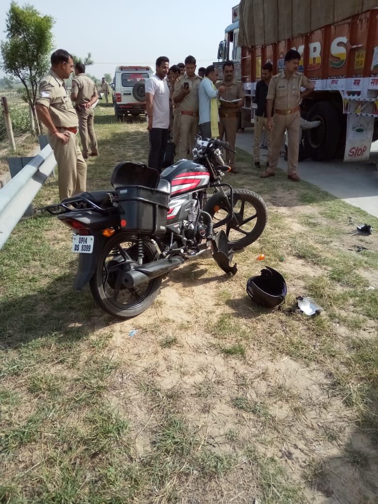 मांट।एक्सप्रेस वे पर टेट्रा राइडिंग जानलेबा साबित हो गयी।तेज रफ्तार बाइक आगे चल रहे ट्रक में टकरा गई,जिससे बाइक चालक की मौके पर मौत हो गयी,जब कि मृतक की एक पुत्री व दो पुत्र घायल हो गए।