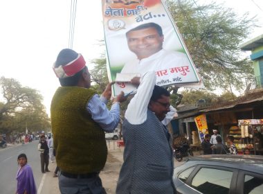 MANT-आचार संहिता लागू होते ही उतार फेंकें नेताओं के हॉर्डिंग्स