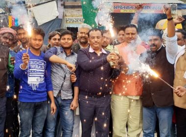 GOVARDHAN-गोवर्धन में खुशी में चले पटाके, बांटी मिठाई, लहराया तिंरगा