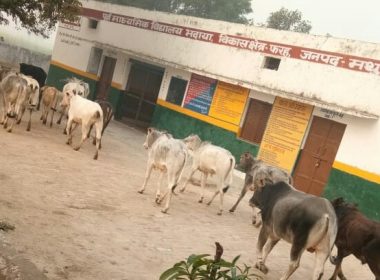 FARAH-परेशान किसानों ने गौवंशों को विद्यालय में किया बंद
